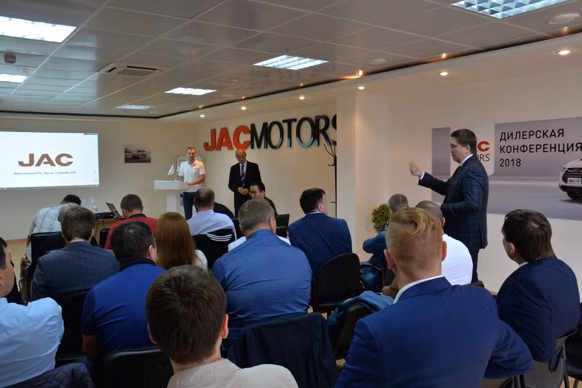 Конференция, приуроченная к 60-летию JAC MOTORS и 10-летию компании «Джак Автомобиль», собрала более 100 участников, среди которых были сотрудники и руководители дилерских центров и сервисных станций, представители финансового сектора, участвующие в программе JAC Finance, а также потенциальные партнёры. Официальные представители ООО «Джак Автомобиль» выступили перед аудиторией и ответили на вопросы, касающиеся продаж, маркетинга, финансовых программ, технического обслуживания, складской логистики, работы учебного центра и других актуальных тем.